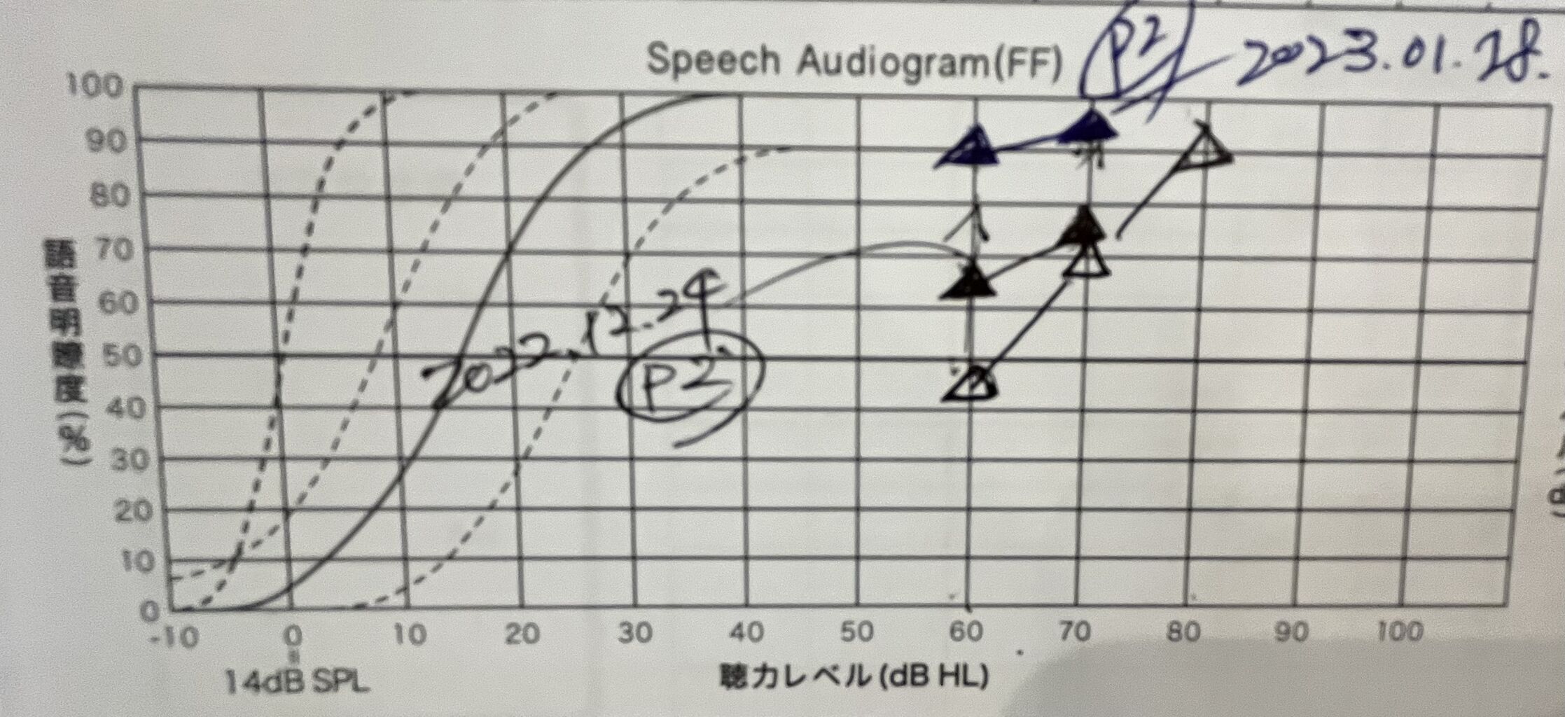 12月24日に測定した言葉の明瞭度も多少の向上は見られましたが、